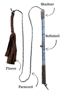 De materialen zijn: pvc, paracord, fleece, softshell en leer