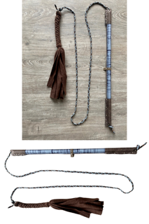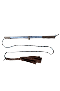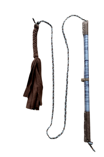 De flirtpole heeft een lengte van ong 65 cm, een touw van 2 meter en een 'prooi' van fleece.