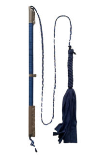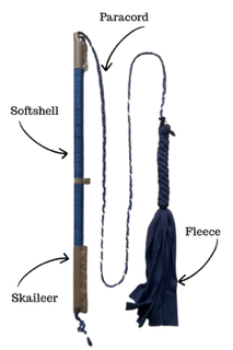 De flirtpole heeft een lengte van ong 65 cm, een touw van 2 meter en een 'prooi' van fleece.